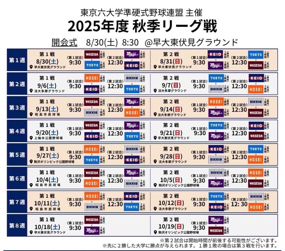 東京六大学秋季リーグ戦に関するお知らせ